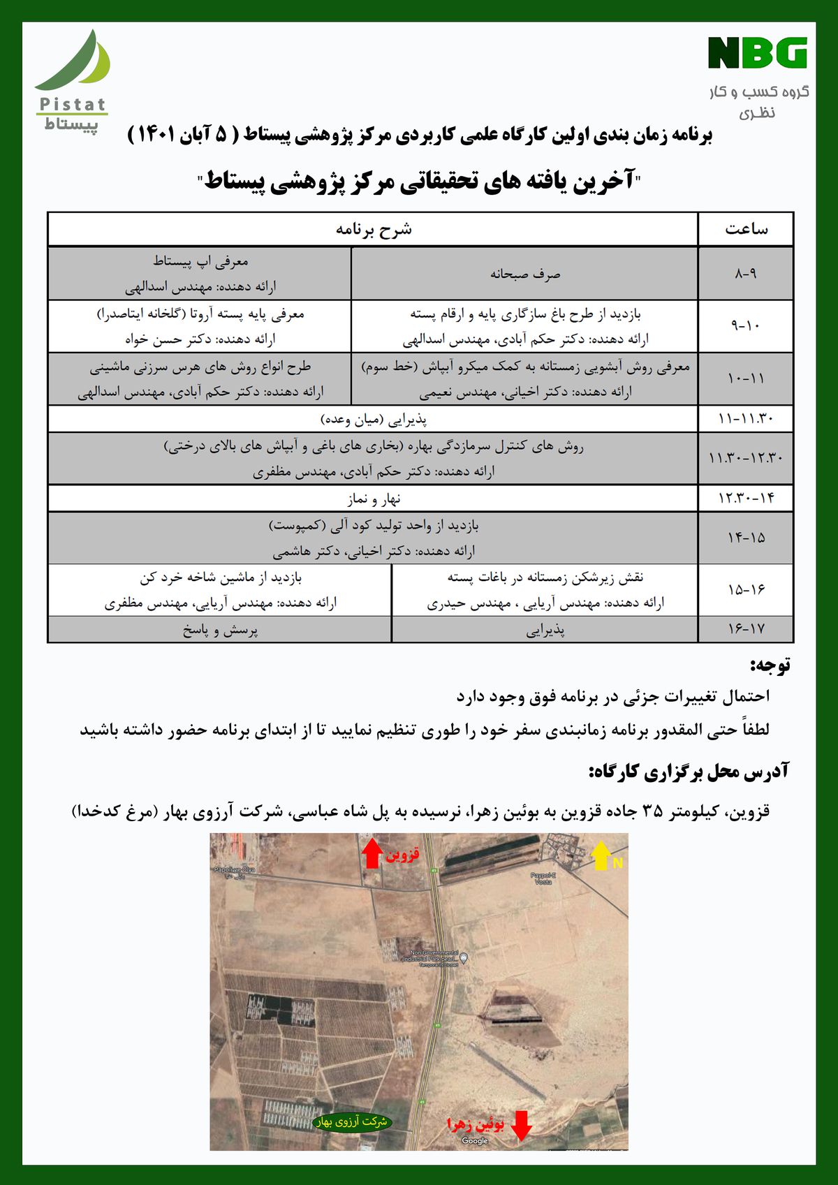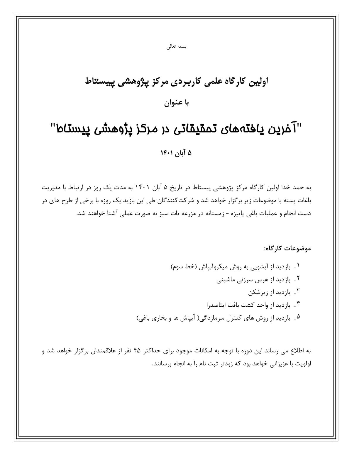 "برنامه زمان بندی اولین کارگاه علمی کاربردی مرکز پژوهشی پیستاط"